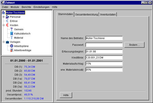 st ein Werkzeug zur betriebswirtschaftlichen Auswertung von klein- und mittelständischen Unternehmen des Handwerks. Das Programm stellt schnell und übersichtlich die wichtigen Kennzahlen eines Handwerksbetriebes dar. Der Anwender ist somit jederzeit in der Lage die aktuellen Betriebsstunden- bzw. Deckungsbeitragssätze des Unternehmens abzulesen.
